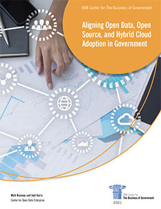Aligning Open Data, Open Source, and Hybrid Cloud Adoption in Government. Federal agencies are increasingly adopting cloud infrastructure, sharing their data across agencies and with the public, and relying on open source software (OSS) as they seek to enhance their capabilities, improve efficiency through IT modernization, and leverage their data for policymaking and administration. In this report published by the IBM Center for the Business of Government, CODE examined how these trends in analytics and technology intersect and can mutually reinforce one another. Drawing on insights from an expert roundtable that brought together leaders in government use of data, software, and cloud approaches to discuss how these domains can best be integrated under current federal policies, the paper explores how government leaders and stakeholders can leverage the intersection of open data, open source, and hybrid cloud models to drive improved performance and productivity.